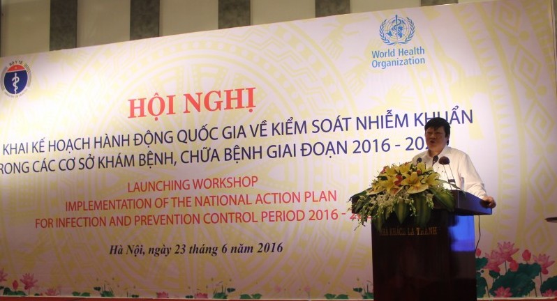 Sáng ngày 23/6 tại Hà Nội, Bộ Y tế phối hợp với Tổ chức Y tế Thế giới tại Việt Nam đã tổ chức Hội nghị triển khai kế hoạch hành động quốc gia về kiểm soát nhiễm khuẩn trong các cơ sở khám, chữa bệnh giai đoạn 2016-2020. GS.TS Nguyễn Viết Tiến, Thứ trưởng Bộ Y tế đã tham dự và chỉ đạo tại Hội nghị.