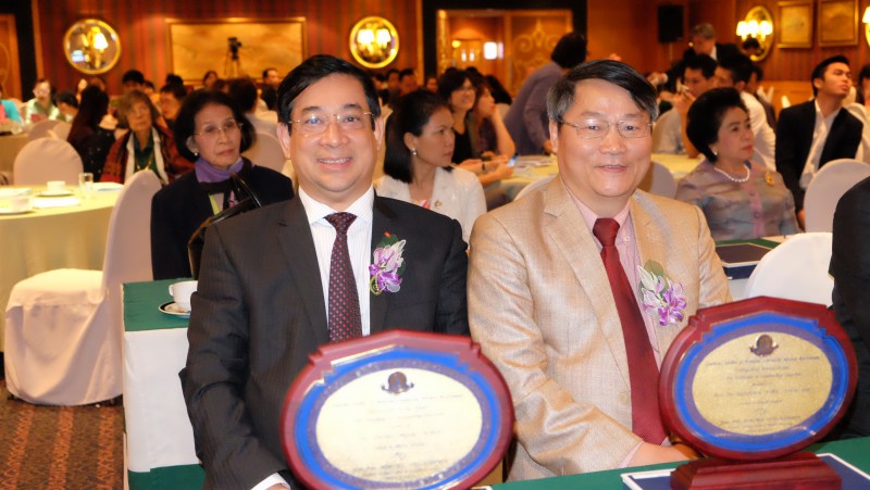 PGS.TS. Lương Ngọc Khuê, TS. Nguyễn Văn Tiên và Bộ trưởng Bộ Y tế Thái Lan tại Lễ vinh danh các cựu sinh viên Mahidol 2016